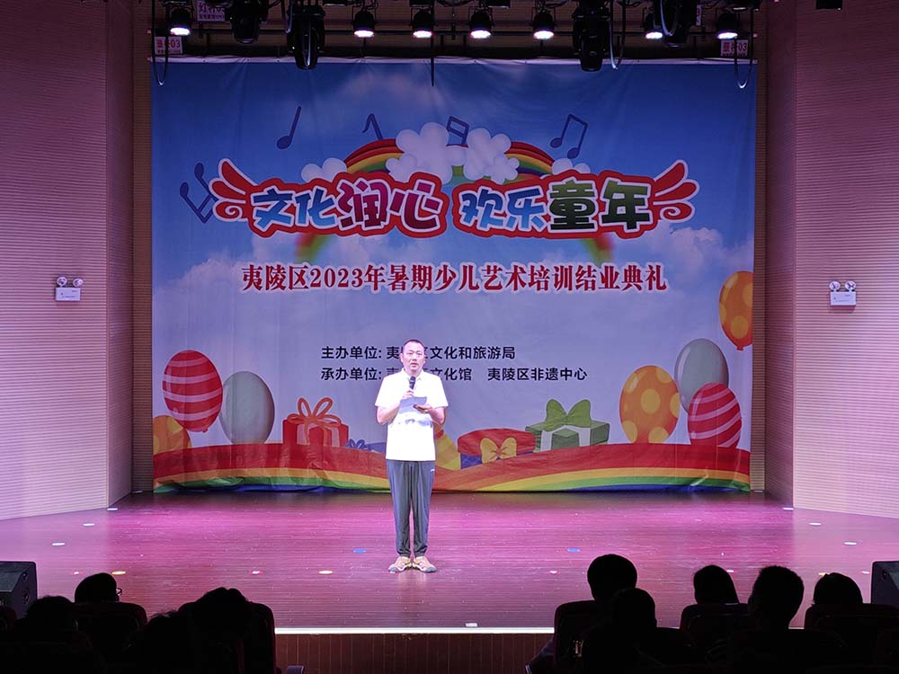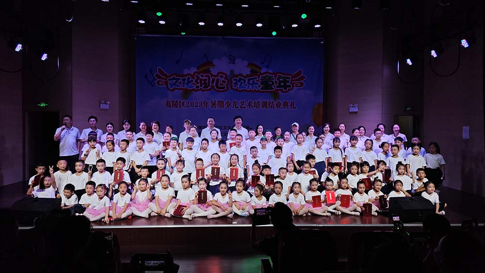 (通讯员 汪玥)7月17日下午,“文化润心 欢乐童年”2023年夷陵区暑期少儿艺术培训结业典礼在夷陵文化中心群星剧场隆重举行。本次培训历时15天,共开设6个班级,总计120个课时,受益少年儿童累计达3000余人次,取得了参与度广、好评率高的社会效益。在结业典礼上,夷陵区文化馆相关领导、授课老师先后为100多名学员颁发了结业证书,为36名学员颁发优秀学员证书,区文化馆馆长薛峰现场致辞。